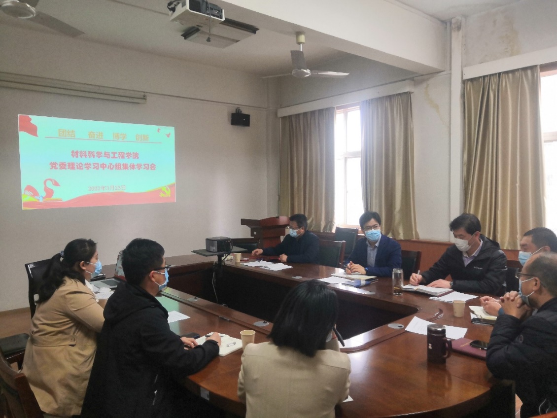 3月25日下午,材料科學與工程學院黨委理論學習中心組在雁塔校區(qū)第四實驗樓312會議室開展集體學習會,學院黨委理論中心組全體成員參加會議,會議由學院黨委書記宋海洋主持。