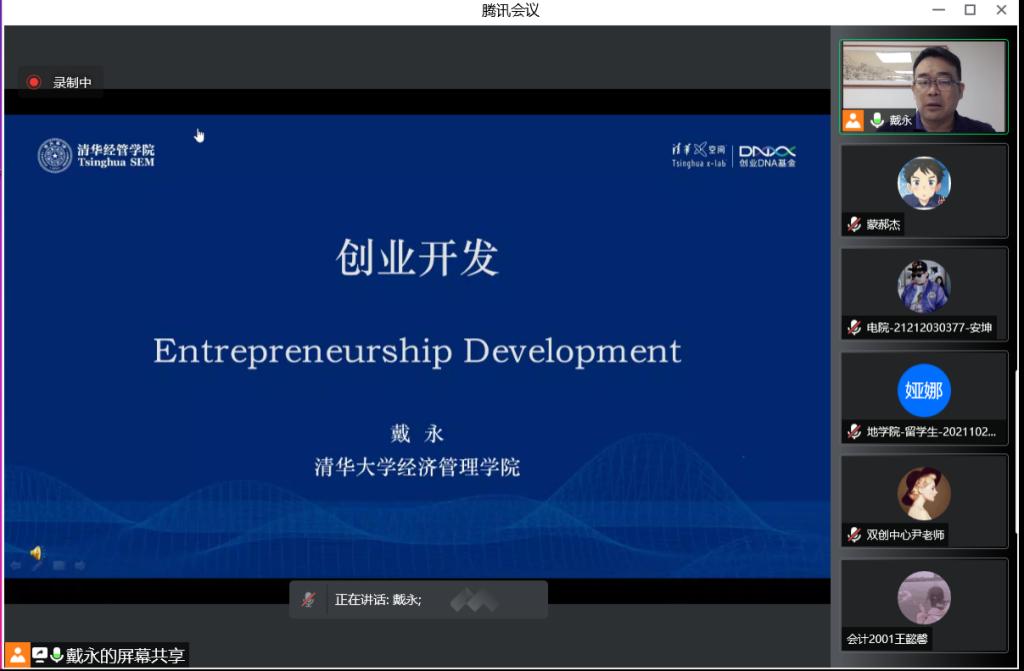 為做好疫情期間“停課不停學(xué),停課不停創(chuàng)”的線上教學(xué)工作,創(chuàng)新創(chuàng)業(yè)中心結(jié)合工作實(shí)際,開展創(chuàng)新創(chuàng)業(yè)線上教育。3月19日下午14點(diǎn),由創(chuàng)新創(chuàng)業(yè)中心主辦的第九期《創(chuàng)新創(chuàng)業(yè)大講堂》通過騰訊會(huì)議順利舉行。本期授課主題是《創(chuàng)業(yè)開發(fā)》,特邀了清華大學(xué)二十國集團(tuán)(G20)創(chuàng)業(yè)研究中心戴永老師主講。