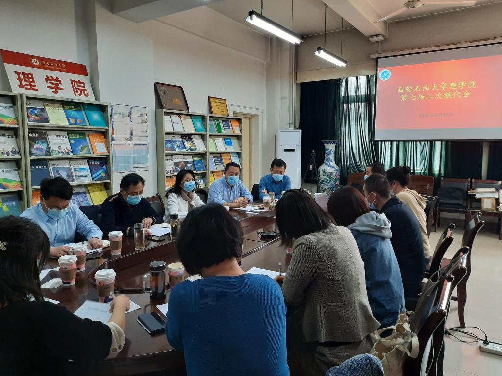 3月11日下午,理學(xué)院在雁塔校區(qū)東方石油樓501會(huì)議室召開了2021年學(xué)院二級(jí)教代會(huì)。學(xué)院全體黨政領(lǐng)導(dǎo)及教代會(huì)代表參加會(huì)議,學(xué)院黨委副書記、工會(huì)主席馬小剛主持會(huì)議。