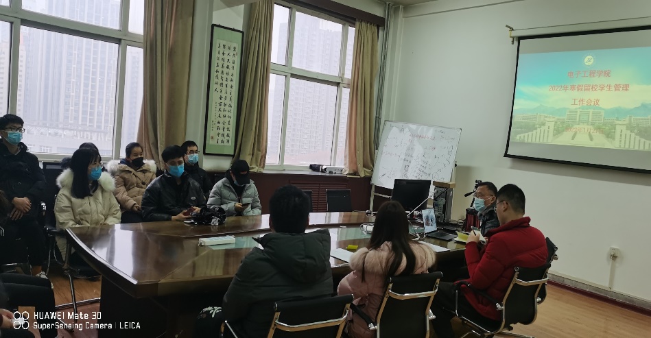為進一步做好常態(tài)化疫情防控形勢下2022年寒假留校學生的教育管理服務工作,維護學校安全穩(wěn)定,確保留校學生度過一個平安、文明、愉快的假期,根據(jù)學校《關于加強寒假期間留校學生管理的通知》精神,電子工程學院于1月27日下午在雁塔校區(qū)1號教學樓908會議室召開2022年寒假留校學生座談會。電子工程學院副院長高國旺、研究生輔導員高建邦、19名研究生以及3名本科生留校同學參加會議。