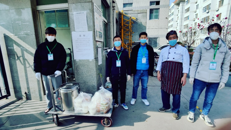 1月11日-16日,得知學(xué)校工作力量調(diào)配組招募15名志愿者組成研究生物資保障突擊隊(duì),材料科學(xué)與工程學(xué)院7名研究生火速報(bào)名參加,師生聯(lián)動(dòng)做好學(xué)校生活物資保障,每天從上午9點(diǎn)到下午18點(diǎn),他們化身為臨時(shí)“外賣(mài)小哥”,穿梭于學(xué)校超市和教師家屬樓之間。