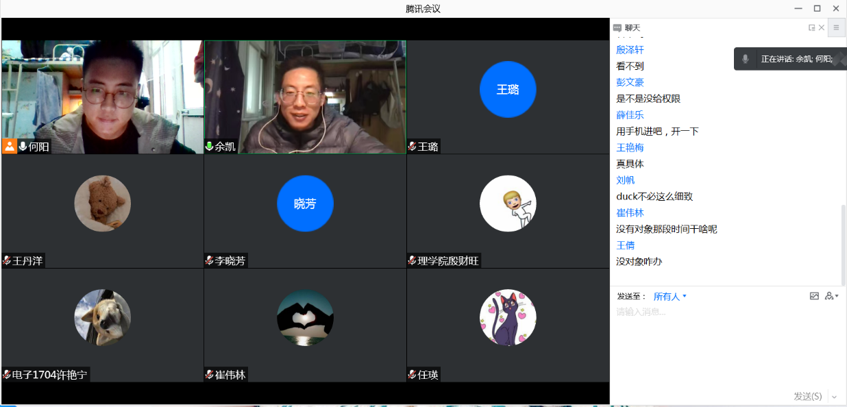 為切實做好疫情防控期間學(xué)生思想政治教育工作,凝聚班級精神和力量,積極引導(dǎo)學(xué)生鑄牢理想信念,強化責(zé)任擔(dān)當(dāng),穩(wěn)定思想情緒,樹立必勝信心,積極主動作為,近日以來,理學(xué)院各年級研究生以騰訊會議方式依次開展了線上主題班會。班會由各年級團支書主持,全體研究生參會。