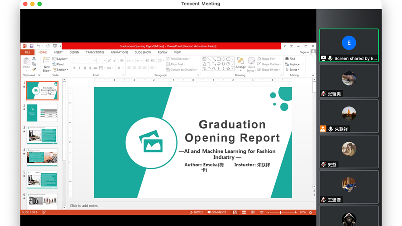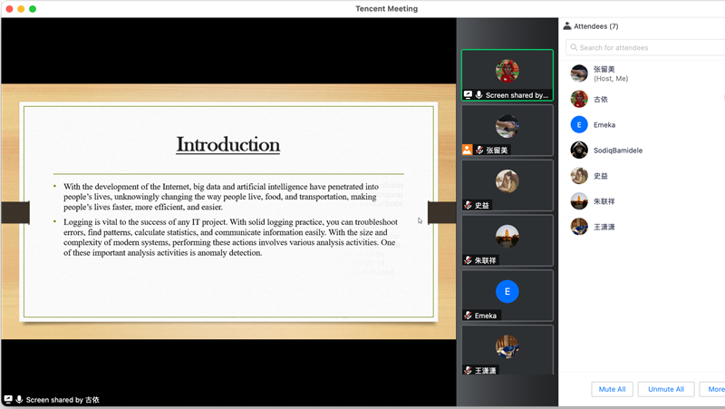 答辯會上,艾聞東、索迪克、梅卡、古依等4名留學(xué)生從論文整體框架以及選題意義、文獻(xiàn)綜述、理論框架、研究方法、創(chuàng)新與特色等方面做了詳細(xì)闡述。4名留學(xué)生生的論文選題包括深色皮膚的面部識別:以非洲人為例、人工智能中的性別偏見和歧視研究、人工智能和機(jī)器學(xué)習(xí)在時裝業(yè)中的應(yīng)用、自動安全日志分析中的異常檢測等。