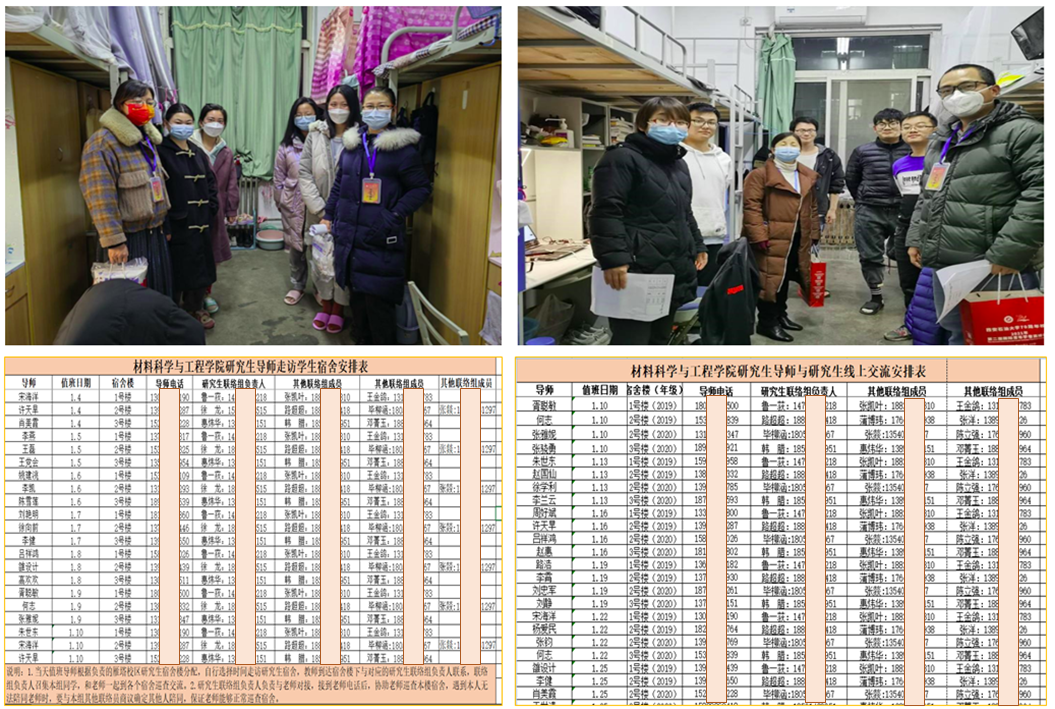 為保證研究生在疫情防控期間更好的成長成才,切實發(fā)揮研究生導師職責,學院黨委精心謀劃、積極部署。一是安排10名教師黨員先鋒隊(研究生導師)在12月31日這一重要時間節(jié)點組成3組進入研究生宿舍,逐一對研究生進行慰問,送新年祝福發(fā)防疫口罩。二是組織在南院居住的19名研究生導師從1月3日開始,每天分三組深入學生宿舍進行走訪交流,關(guān)心學生生活、學習動態(tài),了解學生的實際困難,鼓勵大家積極面對疫情,樹立信心。三是結(jié)合學校封控管理政策,組織全院校內(nèi)外研究生導師從1月9日開始,每次分四組對雁塔校區(qū)全體研究生開啟“云溝通、云指導”模式,導師通過騰訊會議等在線軟件用先進典型事例向研究生弘揚抗疫精神,引導研究生正確面對疫情,教育研究生增強自我防護能力和防護意識,遵守疫情防控相關(guān)規(guī)定,積極對研究生開展心理疏導、學業(yè)指導和人文關(guān)懷等工作。