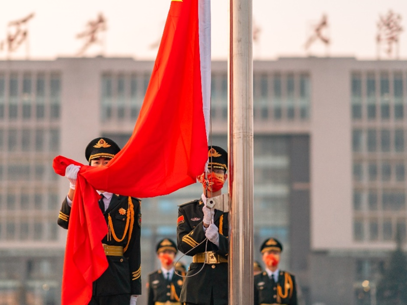 張峻宇(后排左四)圓滿完成2022年元旦升旗任務