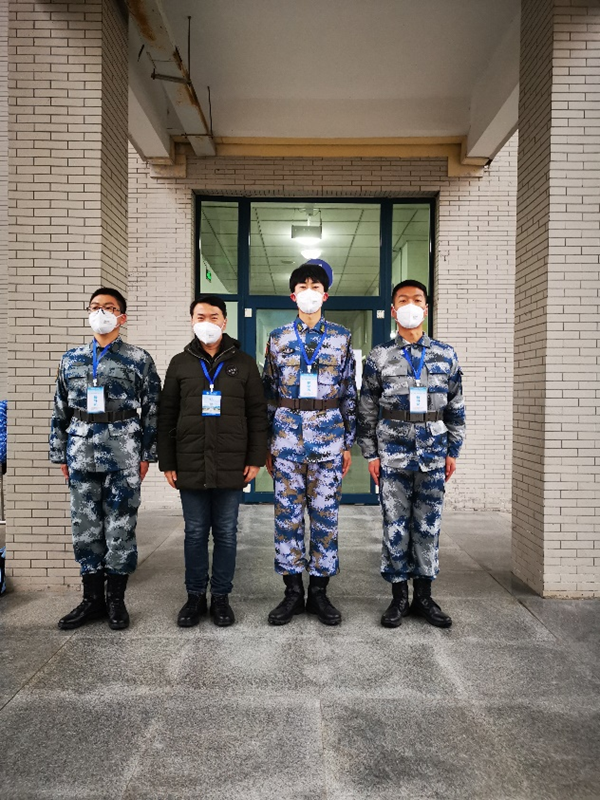 張峻宇(右二)同學與保衛(wèi)處袁坤老師及隊員完成封控區(qū)考場任務