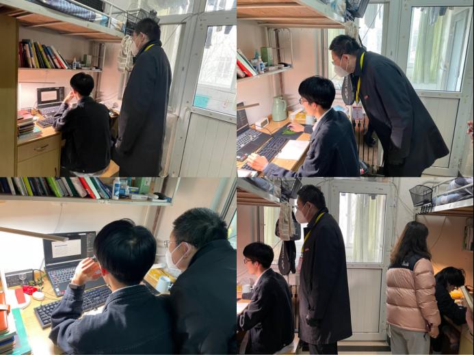 在學(xué)生宿舍,竇院長(zhǎng)認(rèn)真查看每個(gè)專業(yè)、每個(gè)年級(jí)學(xué)生的線上聽課情況,了解網(wǎng)絡(luò)平臺(tái)授課效果,表?yè)P(yáng)同學(xué)們的刻苦認(rèn)真態(tài)度。