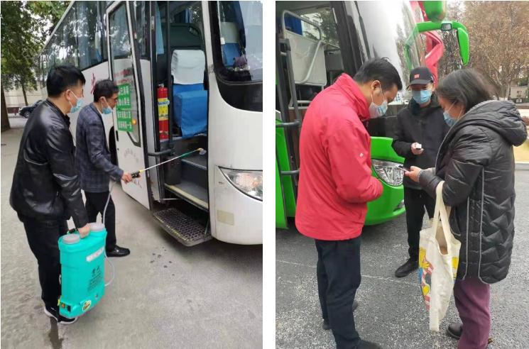 圖:通勤班車人員進行車輛消殺和執(zhí)行乘車人員測溫和核查措施