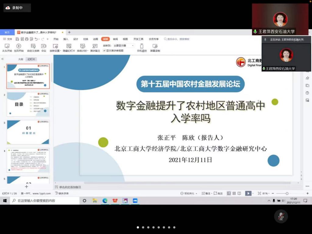 學(xué)院研究生劉亞倩的論文“數(shù)字普惠金融能夠縮小城鄉(xiāng)收入差距嗎?”一文入選,并在“數(shù)字普惠金融理論與實(shí)踐”分論壇進(jìn)行了匯報(bào)交流。