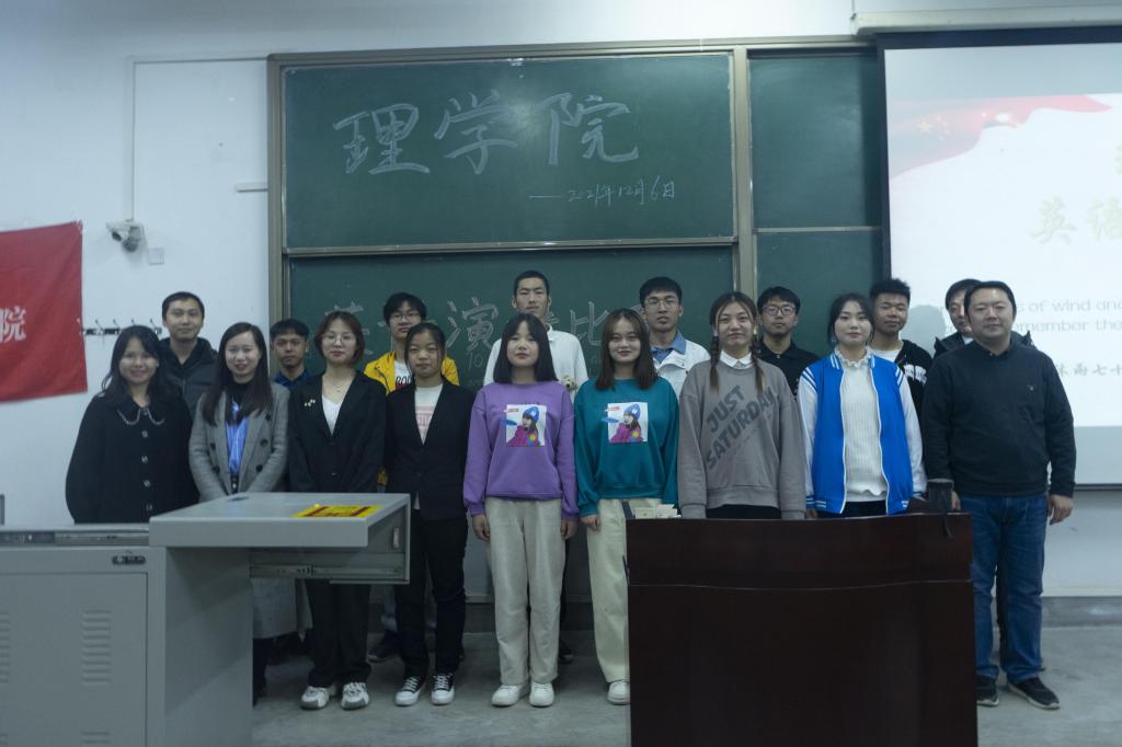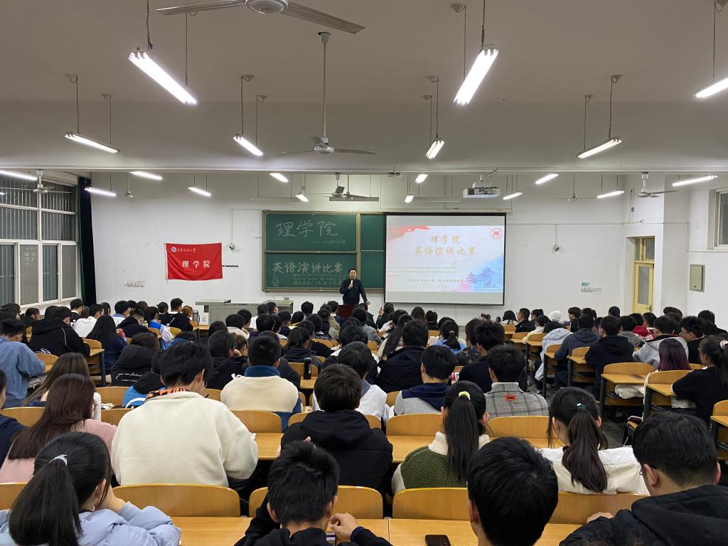 為進一步加強學(xué)風(fēng)建設(shè),提高同學(xué)們英語學(xué)習(xí)的積極性,營造濃郁英語學(xué)習(xí)氛圍,理學(xué)院于12月6號晚在鄠邑校區(qū)博思樓114教室舉行了以“櫛風(fēng)沐雨七十載,飲水思源銘校恩”為主題的英語演講比賽。理學(xué)院黨委副書記馬小剛出席并講話,學(xué)生工作辦公室主任丁亦喆、輔導(dǎo)員林曄、計算機學(xué)院輔導(dǎo)員姜楠、李路老師擔(dān)任此次比賽評委,理學(xué)院近200名學(xué)生參加本次活動。