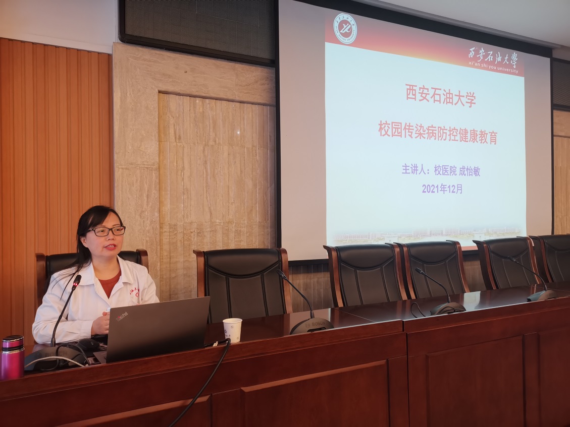 為讓廣大師生增強防控意識,了解傳染病知識,提高防治能力,年12月3日,校醫(yī)院在鄠邑校區(qū)圖書館第一會議室開展了傳染病防控知識教育活動。成怡敏副主任醫(yī)師作了題為《校園傳染病防控健康教育》專題講座。輔導員、學生干部、后勤職工等代表近200人參加了講座。