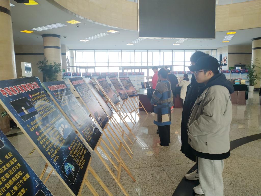 1118日上午,“普及航天知識(shí)?弘揚(yáng)航天精神”展覽在鄠邑校區(qū)圖書館二樓大廳開展。展覽分為三個(gè)部分:“航天圖書展”“航天圖片展”“航天精神譜系展”。“航天圖書展”布設(shè)了航天科普?qǐng)D書、航天院士傳記系列圖書、航天英雄、世界航天發(fā)展史、中國航天發(fā)展史等5個(gè)展臺(tái),展出館藏100余冊(cè)圖書;“航天圖片展”布設(shè)了“中國航天發(fā)展初期大事記、我國神舟系列飛船發(fā)展大事記、中國航天科學(xué)家——追尋飛天的足跡、中國十大飛天航天員”等4個(gè)板塊13張展板;“航天精神譜系展”從形成過程、精神載體、精神內(nèi)涵等3個(gè)方面,介紹了航天傳統(tǒng)精神、“兩彈一星”精神、載人航天精神、北斗精神、探月精神的形成過程、基本內(nèi)涵和時(shí)代價(jià)值。