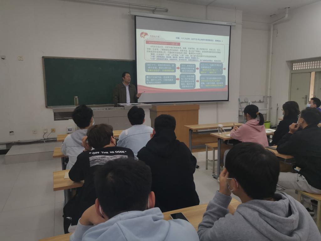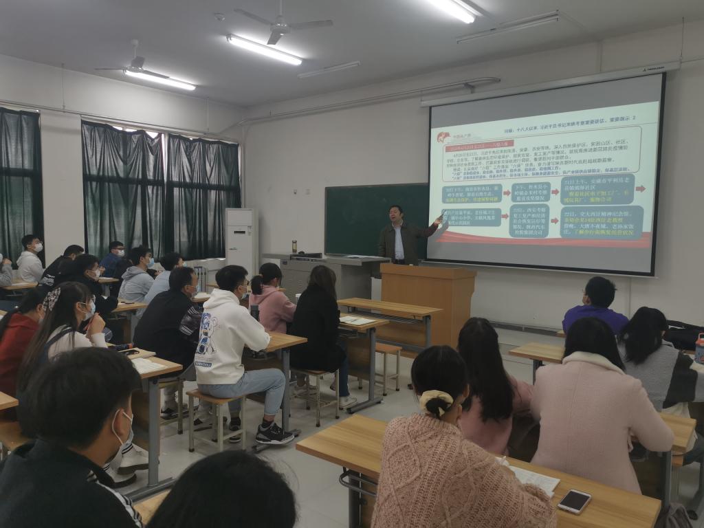 10月22日下午,理學(xué)院在鄠邑校區(qū)志遠樓502教室組織舉辦了深入學(xué)習(xí)習(xí)近平總書記來陜考察重要講話重要指示精神的專題黨課。學(xué)院黨委副書記馬小剛主講,學(xué)生管理工作辦公室主任丁亦喆主持,學(xué)院四個本科生黨支部全體成員共80余名學(xué)生黨員參加黨課學(xué)習(xí)。