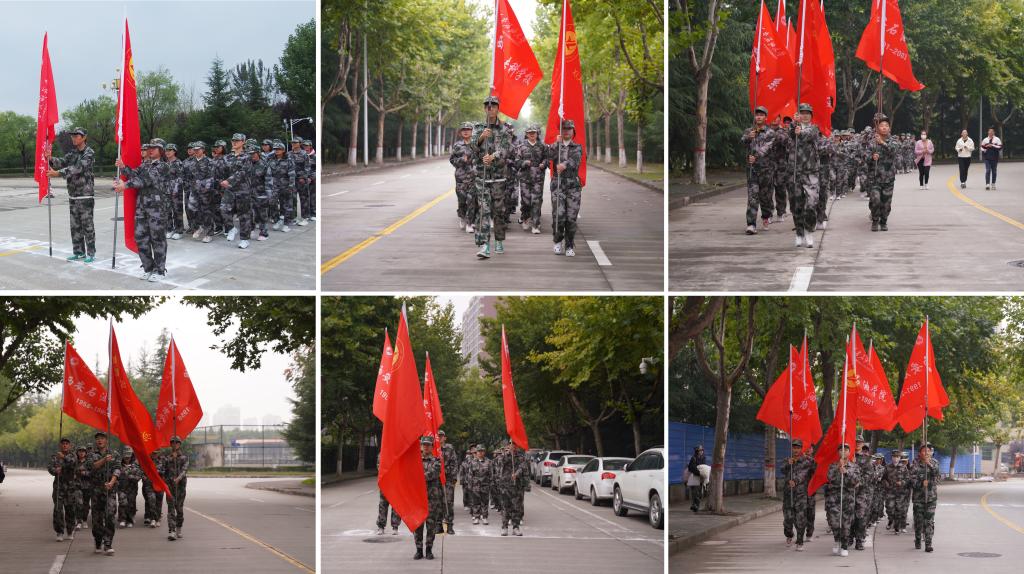 此次接力跑活動共分為七個階段,分別由2021級本科生各班級領(lǐng)跑,每一階段都代表著不同的年份,各班級手持學校和學院不同發(fā)展階段的旗幟,身穿軍訓服,由圖書館北廣場出發(fā),途徑第一食堂、A區(qū)教學樓、第二食堂、學生公寓、東門、北門完成環(huán)校接力跑。英語2101班胡雨桐代表全體同學為西石大70周年校慶獻上祝福,祝愿西石大的明天更加輝煌。