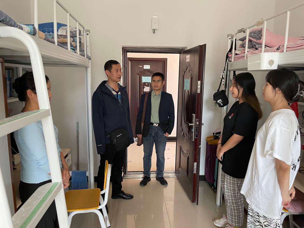學(xué)院黨委副書記張云姿帶隊對學(xué)生宿舍進行走訪與安全檢查。走訪檢查期間,張副書記詳細詢問了同學(xué)們開學(xué)以來的生活和學(xué)習(xí)情況,希望同學(xué)們和睦相處,共同營造文明友愛、干凈衛(wèi)生、安全有序的宿舍生活環(huán)境;提醒同學(xué)們要自覺遵守學(xué)校宿舍管理規(guī)章制度,要求同學(xué)們積極配合學(xué)校開展的各項安全檢查工作,牢固樹立安全意識,養(yǎng)成良好的行為習(xí)慣;叮囑同學(xué)們在十一假期要注意安全,嚴(yán)格遵守疫情防控規(guī)定,留校的同學(xué)要多與家人聯(lián)系,利用假期積極充實和提高自己。