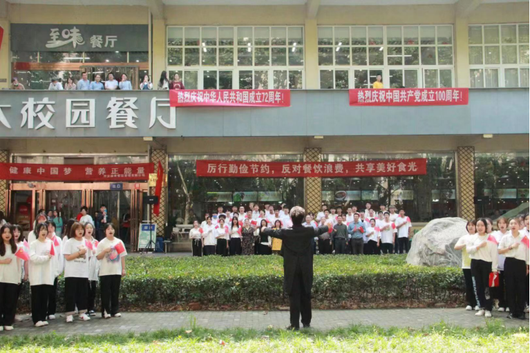 站在“兩個(gè)一百年”奮斗目標(biāo)的歷史交匯點(diǎn),為慶祝中華人民共和國(guó)72歲華誕和建黨100周年,9月30日中午音樂(lè)系組織師生在雁塔校區(qū)學(xué)生餐廳舉辦“紅歌快閃”活動(dòng),吸引了眾多師生觀看,場(chǎng)面熱烈。副校長(zhǎng)陳軍斌,紀(jì)委、規(guī)劃處、石油工程學(xué)院、經(jīng)濟(jì)管理學(xué)院、音樂(lè)系主要負(fù)責(zé)人,以及80余名音樂(lè)系師生參加了本次“紅歌快閃”活動(dòng)。該活動(dòng)由音樂(lè)系黨總支策劃,何云、毛楠、朱玥三位老師指導(dǎo)。音樂(lè)系已連續(xù)四年五次舉辦“紅歌快閃”活動(dòng),唱響主旋律,展現(xiàn)師生良好的精神風(fēng)貌。