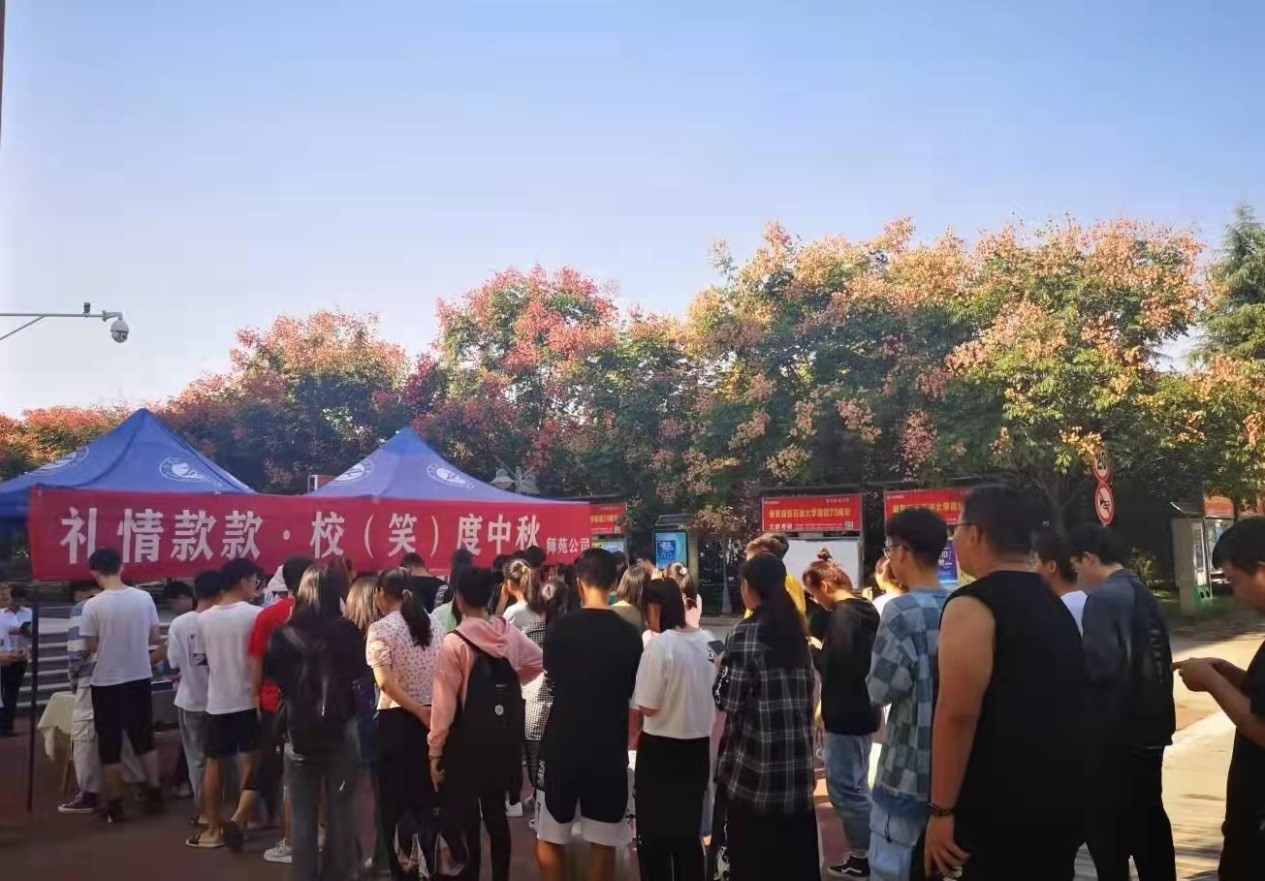 9月21日中秋節(jié),后勤管理處飲食服務(wù)中心聯(lián)合知味苑和那些年餐廳服務(wù)方,在鄠邑校區(qū)開展了“禮情款款·校(笑)度中秋”送月餅活動。