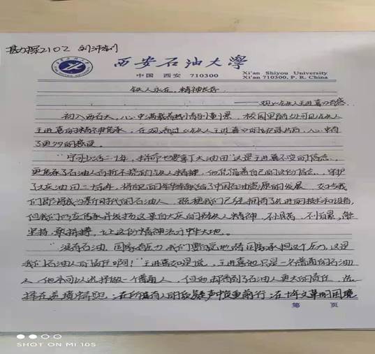 理想信念教育不僅是培養(yǎng)中國(guó)特色社會(huì)主義事業(yè)建設(shè)者和接班人的時(shí)代要求,更是實(shí)現(xiàn)中華民族偉大復(fù)興中國(guó)夢(mèng)的迫切需要,大一新生理想信念教育是引導(dǎo)、激勵(lì)、凝聚大學(xué)生成長(zhǎng)成才的重要抓手,是系好人生第一??圩拥年P(guān)鍵環(huán)節(jié)。我院新生理想信念教育以“鐵人精神”教育為主要切入點(diǎn),在B區(qū)教學(xué)樓組織新生開展了《鐵人王進(jìn)喜》的觀影活動(dòng),并積極組織撰寫了心得體會(huì);黨委書記馬行天在鄠邑校區(qū)弘石報(bào)告廳為新生做了“堅(jiān)定理想信息,做好大學(xué)規(guī)劃”的主題講座;黨委副書記王瑩在弘石報(bào)告廳向新生做了學(xué)校發(fā)展歷程和學(xué)院優(yōu)良傳統(tǒng)的主題報(bào)告,經(jīng)過(guò)理想信念教育,同學(xué)們逐漸明白要將小我融入祖國(guó)和人民的大我之中,才會(huì)更好的實(shí)現(xiàn)人生價(jià)值。