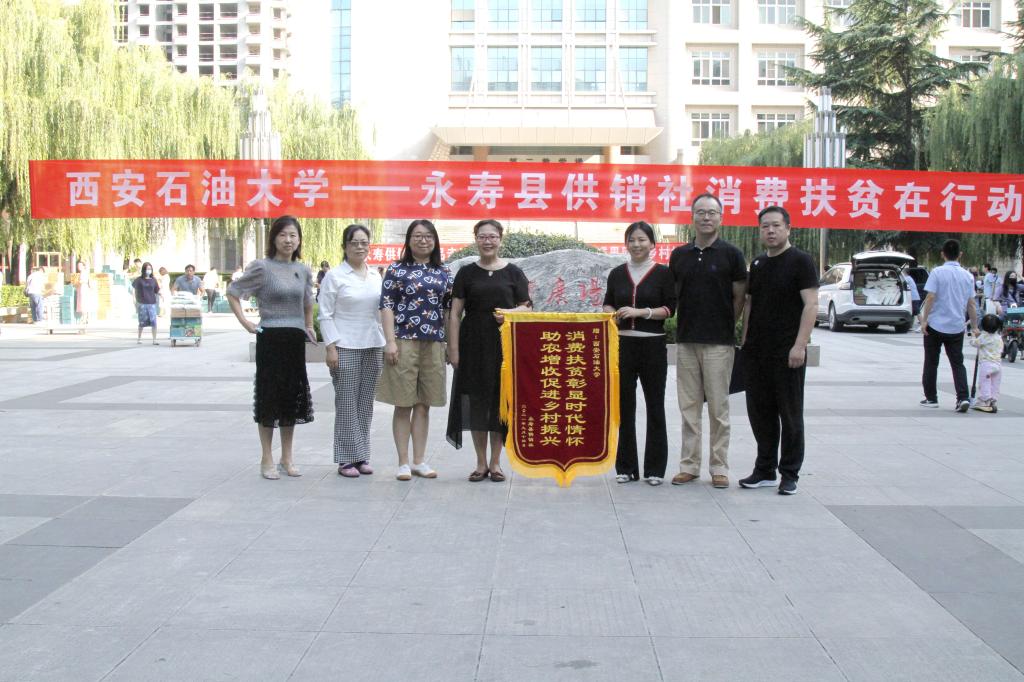 為感謝我校在鄉(xiāng)村振興中對(duì)永壽縣的大力幫助,永壽縣供銷(xiāo)社向校工會(huì)贈(zèng)送了錦旗。