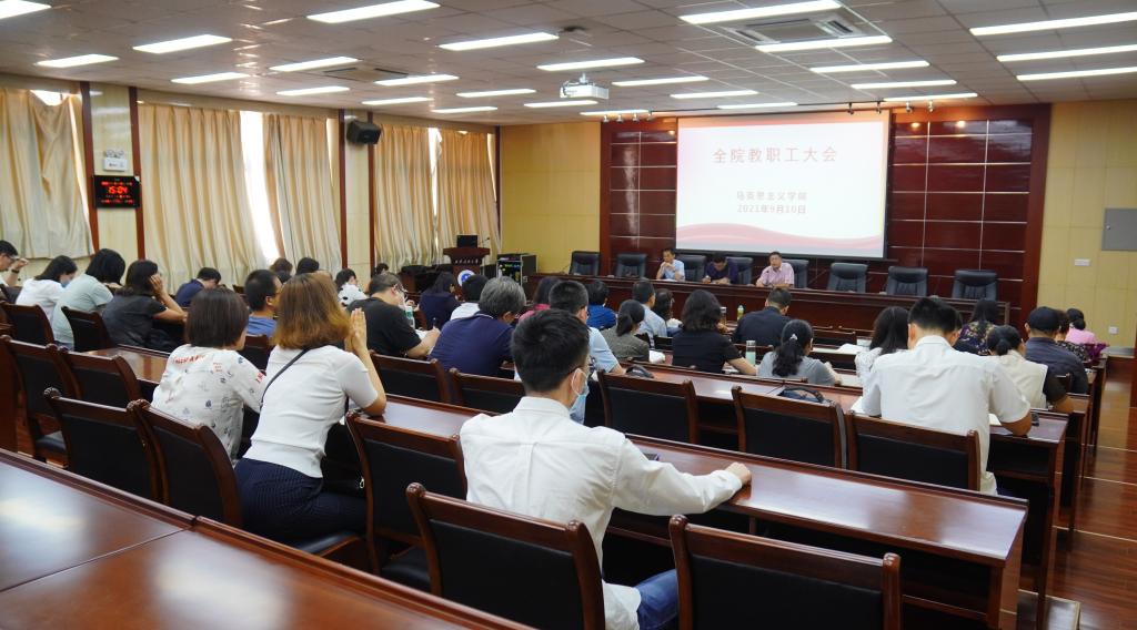 9月10日下午,為慶祝第37個(gè)教師節(jié),馬克思主義學(xué)院在雁塔校區(qū)會(huì)議中心第五會(huì)議室召開全院教職工大會(huì),開展“賡續(xù)百年初心 擔(dān)當(dāng)育人使命”主題師德師風(fēng)建設(shè)暨教師宣誓承諾活動(dòng)。學(xué)院黨總支書記張偉主持會(huì)議,學(xué)院領(lǐng)導(dǎo)班子及全體教職工共50余人參加。