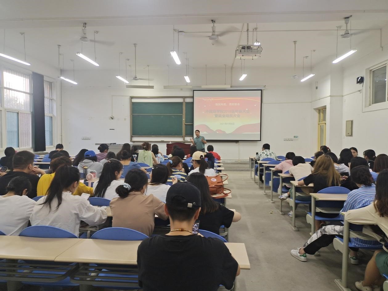 為積極應(yīng)對(duì)疫情常態(tài)化下的嚴(yán)峻就業(yè)形勢(shì),貫徹落實(shí)習(xí)近平總書(shū)記來(lái)陜重要講話(huà)精神,按照學(xué)校2022屆畢業(yè)生就業(yè)工作部署要求,9月8日晚,外國(guó)語(yǔ)學(xué)院在鄠邑校區(qū)B105、B104召開(kāi)2018級(jí)年級(jí)大會(huì)暨就業(yè)動(dòng)員會(huì)。學(xué)院黨委副書(shū)記王業(yè)青、2018級(jí)輔導(dǎo)員陳浩和全體應(yīng)屆畢業(yè)生參加會(huì)議。