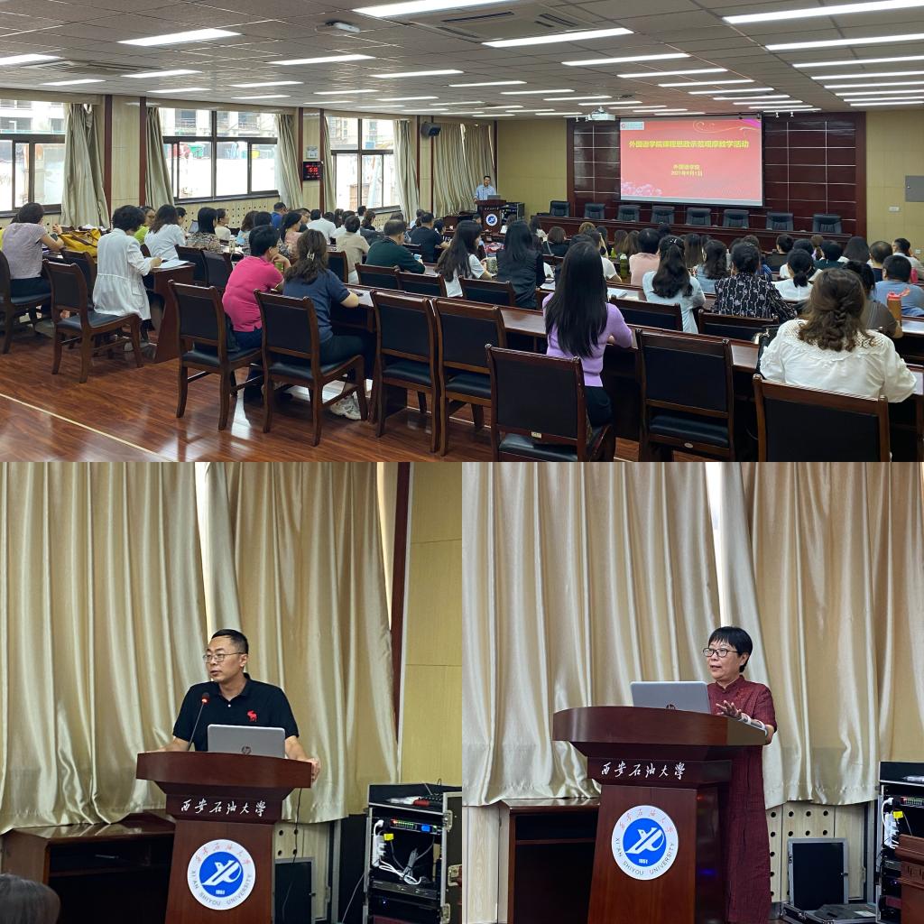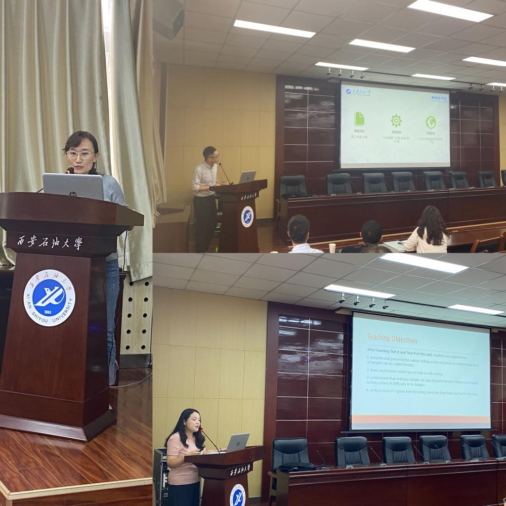 教學(xué)觀摩前,教務(wù)處副處長吳勛和外國語學(xué)院院長于艷英分別從國際形勢,外語教學(xué)等方面強調(diào)了課程思政的重要性做了講話。教學(xué)示范觀摩活動特邀請我院在西安石油大學(xué)課程思政大練兵競賽獲得二等獎的周曉寒老師和在西安石油大學(xué)青年教師教學(xué)競賽一等獎的陳旭老師以及在“外教社杯”全國高校外語教學(xué)大賽陜西賽區(qū)三等獎苗旸老師為大家做課程思政展示,老師們在教學(xué)活動中將中外文化相結(jié)合,把課程思政融入到外語教學(xué)中,引導(dǎo)學(xué)生用外語講述中國故事,用外語傳播中國文化。