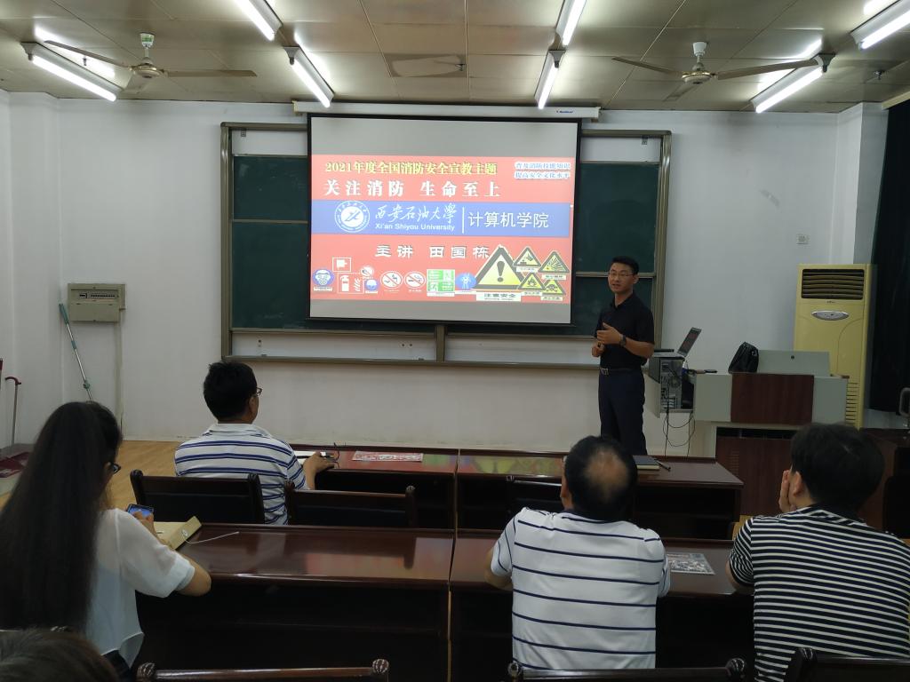 大會第二階段,學(xué)院邀請西安市圣安防火技術(shù)中心特聘講師田國棟,為學(xué)院全體教職工進(jìn)行了消防安全主題講座。田老師從真實(shí)火災(zāi)案例出發(fā),為大家生動的普及了消防器材使用、險情中自救與施救、實(shí)驗(yàn)室(家庭)突發(fā)險情應(yīng)對等消防安全常識,增強(qiáng)了全院教職工防火防災(zāi)意識。
