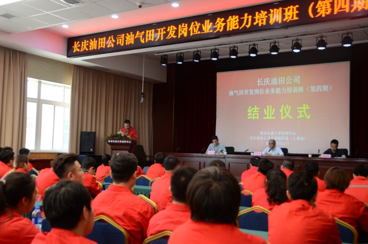 7月12日上午,由長慶油田公司黨委組織部(人事部)、西安石油大學(xué)培訓(xùn)中心聯(lián)合舉辦的長慶油田公司油氣田開發(fā)崗位業(yè)務(wù)能力培訓(xùn)班(第四期)在完成既定課程和結(jié)業(yè)考核后,圓滿結(jié)業(yè)。長慶油田公司黨委組織部(人事部)技術(shù)干部管理科科長鄒躍邦,我校繼續(xù)教育學(xué)院副院長吳民生出席結(jié)業(yè)儀式并為學(xué)員代表頒發(fā)結(jié)業(yè)證書。