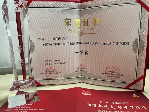 馬克思主義學(xué)院孔微波同學(xué)參加“卓越之言杯”陜西省首屆校園經(jīng)典誦讀大賽線下展演活動并獲大學(xué)非專業(yè)組一等獎