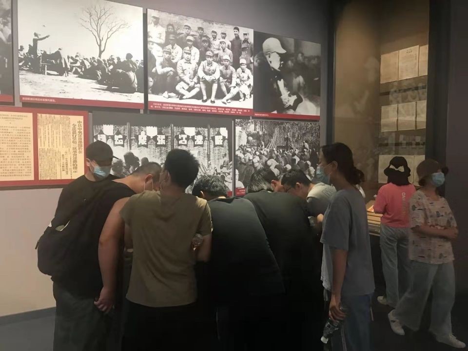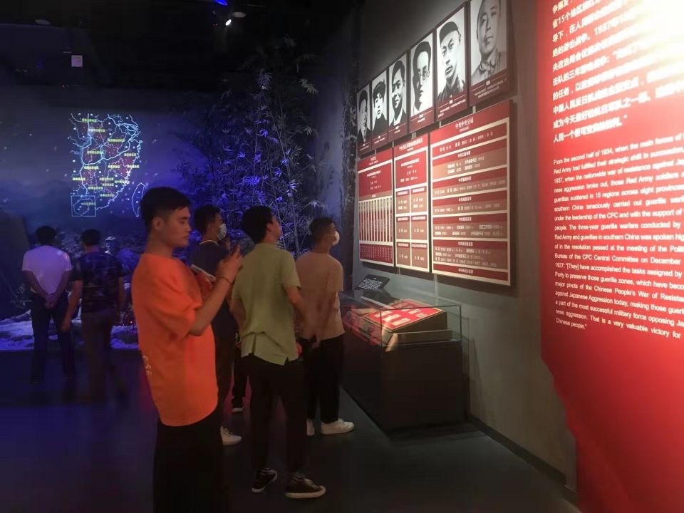 在講解員的帶領(lǐng)下,同學(xué)們徐徐地步入紀(jì)念館內(nèi),參觀學(xué)習(xí)了新四軍的發(fā)展史主題陳列,展館內(nèi)一件件珍貴的革命歷史文物,一張張革命英烈的照片,將大家引入到了那段艱苦奮斗、頑強(qiáng)拼搏的抗日戰(zhàn)爭歲月中去。館內(nèi)的許多壁畫,形象直觀地向大家展示了戰(zhàn)爭的激烈場景。戰(zhàn)爭是殘酷的、無情的,它侵害的是一個個無辜的老百姓的生命,使人民生活在水深火熱之中。為了人民的幸福生活,一代代共產(chǎn)黨人、一輩輩革命先烈拋頭顱、灑熱血,前赴后繼,無怨無悔。面對大無畏的英雄史詩,同學(xué)們紛紛表示:我們一定要銘記歷史,珍惜今天來之不易的美好生活,反對戰(zhàn)爭,維護(hù)和平。江山就是人民,人民就是江山,共產(chǎn)黨打江山、守江山,守的就是人民的心。立足百年征程,我們要認(rèn)認(rèn)真真開展黨史學(xué)習(xí),不忘黨的初心和使命,做到學(xué)史明理、學(xué)史增信、學(xué)史崇德、學(xué)史力行,學(xué)黨史、悟思想、辦實(shí)事、開新局,不斷增強(qiáng)“四個意識”,堅定“四個自信”,做到“兩個維護(hù)”,聽黨話,感黨恩,跟黨走。
