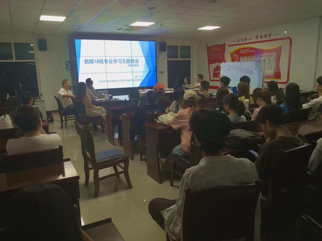 為幫助學(xué)生進一步認(rèn)清考研與就業(yè)形勢,為即將到來的四年級學(xué)習(xí)和生活做好準(zhǔn)備,7月2日,在鄠邑校區(qū)C1樓112會議室,計算機學(xué)院教工第五黨支部組織部分教師黨員召開了“考研與就業(yè)”主題班會。學(xué)院黨委委員、數(shù)字媒體系主任楊文陽、教師黨員代表吉喆、何志州、趙越、李湘眷、崔惠萍和2018級數(shù)字媒體技術(shù)專業(yè)全體學(xué)生參加了本次班會。