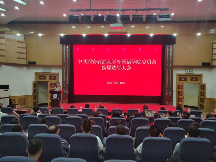 6月10日下午,外國語學(xué)院黨委委員換屆選舉黨員大會(huì)在雁塔校區(qū)學(xué)術(shù)報(bào)告廳舉行。會(huì)議聽取和審議了學(xué)院黨委工作報(bào)告,選舉產(chǎn)生了新一屆委員會(huì)。會(huì)議由外國語學(xué)院黨委副書記王業(yè)青主持,學(xué)院130余名師生黨員出席了會(huì)議,30余名本科生預(yù)備黨員在鄠邑校區(qū)崇文樓314教室參加了視頻同步會(huì)議。