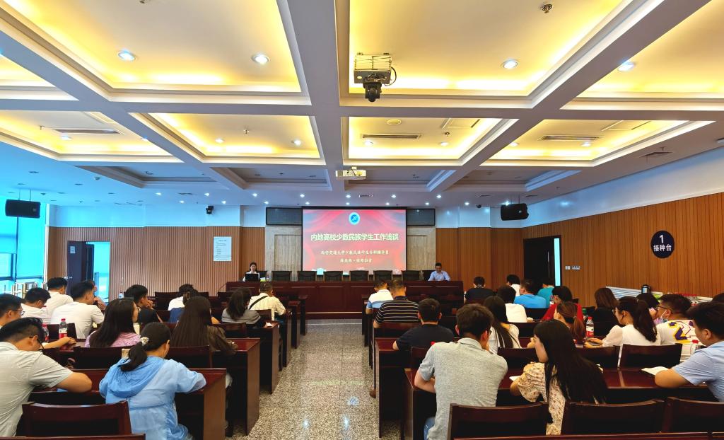 6月2日下午,學(xué)生工作部邀請2020年全國“最美輔導(dǎo)員”榮譽稱號獲得者、西安交通大學(xué)少數(shù)民族學(xué)生專職輔導(dǎo)員庫來西·依布拉音為我校全體輔導(dǎo)員老師及少數(shù)民族學(xué)生作報告。庫來西·依布拉音分別以《內(nèi)地高校少數(shù)民族學(xué)生工作淺談》《唱響民族團結(jié)主旋律·鑄就勵志奮斗中國夢》為題作了兩場內(nèi)容豐富的報告。全體學(xué)工干部和少數(shù)民族學(xué)生代表共450余人聆聽了報告。報告會由學(xué)生工作部(處)副部(處)長龐秉謙主持。