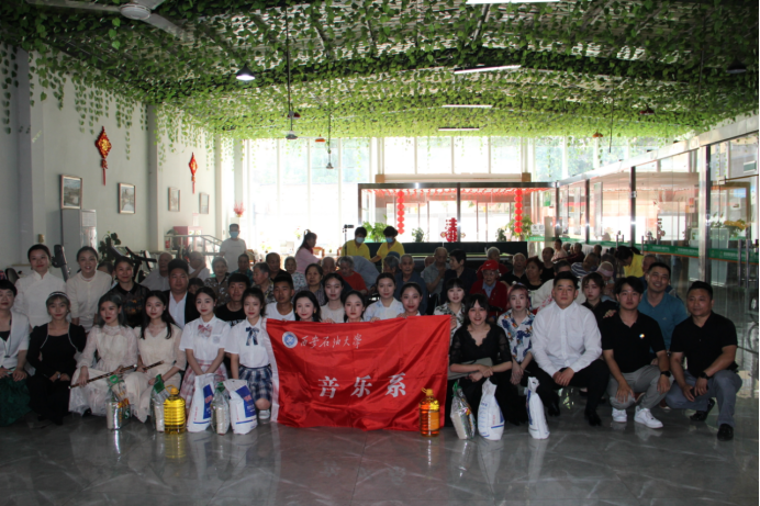本次活動音樂系為養(yǎng)老院捐贈了四袋大米、兩桶油,為公益事業(yè)獻出一片愛心,充分體現(xiàn)關(guān)愛老人、尊老愛幼的傳統(tǒng)美德,發(fā)揮黨員的先鋒模范作用。同時利用社會公益平臺向廣大師生傳遞社會責(zé)任感,培養(yǎng)和鍛煉學(xué)生們的實踐表演能力提高演出經(jīng)驗。本場演出共10個節(jié)目,由一曲二胡曲《珊瑚頌》拉開了序幕,極具民族特色的音樂,展示出我校大學(xué)生樂觀積極的人生態(tài)度,老人們聽到這美妙的旋律時不時的拿手在打節(jié)拍;《竹笛演奏—草原小牧民》《長笛吹奏—歡樂頌》《嗩吶表演—好漢歌》,活潑歡快,展示了音樂學(xué)子精湛的專業(yè)技巧、高超的舞臺表現(xiàn)力;歌曲《我和我的祖國》《典獄司》《父親》都彰顯著愛國、經(jīng)典京劇的傳承與傳統(tǒng)美德,最后一首《父親》,令在場的人們熱淚盈眶。