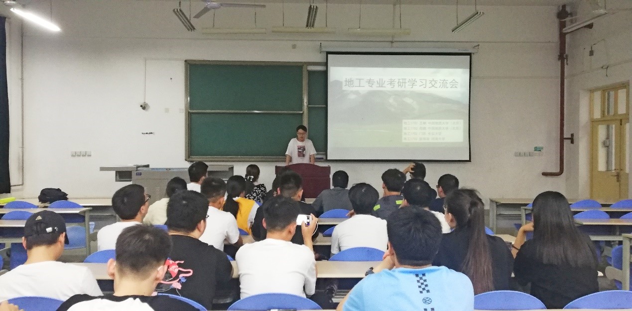 2021520日下午七點在B102教室,地工專業(yè)學(xué)生第二黨支部王柳、周璐、張海濤、門歡同學(xué)進行了考研學(xué)習(xí)經(jīng)驗交流,地工專業(yè)27位同學(xué)參加。