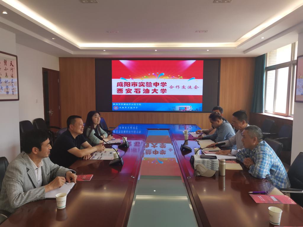 韓望校長(zhǎng)對(duì)我校一行的來(lái)訪表示熱烈的歡迎和衷心的感謝,并詳細(xì)介紹了咸陽(yáng)實(shí)驗(yàn)中學(xué)的發(fā)展歷程、辦學(xué)特色和教學(xué)成果,咸陽(yáng)市實(shí)驗(yàn)中學(xué)是咸陽(yáng)市教育局直屬的重點(diǎn)中學(xué),全校共有教職工480余名,學(xué)生6000余人,目前以高中部為主,每年高考一本上線率都能達(dá)到90%以上。韓校長(zhǎng)表示,希望兩校以后能夠保持常態(tài)化的對(duì)接與合作,除招生宣傳外,還能夠在學(xué)生生涯規(guī)劃、研學(xué)活動(dòng)、心理輔導(dǎo)、教師培訓(xùn)等方面進(jìn)行進(jìn)一步的合作,同時(shí)歡迎西安石油大學(xué)到校開(kāi)辦招生宣講會(huì)。
