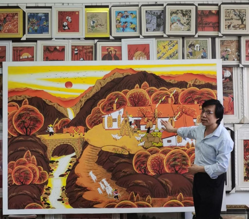 據(jù)悉,鄠邑農(nóng)民畫(huà)有著悠久的歷史,起源于上世紀(jì)50年代的農(nóng)民“一手扛鋤頭,一手拿畫(huà)筆”在農(nóng)忙閑暇時(shí)的創(chuàng)作,其中許多精品被集結(jié)成冊(cè),印刷成郵票在全國(guó)發(fā)行。王乃良、朱丹紅老師正在積極創(chuàng)作以“建黨100周年”和“鄉(xiāng)村振興”為主題的作品,他們希望通過(guò)此次和同學(xué)們的交流,在展示鄠邑鄉(xiāng)土人情與鄉(xiāng)村振興計(jì)劃成果的同時(shí),讓更多的青年人了解傳統(tǒng)文化,并很好的傳承下去。
