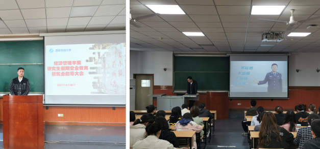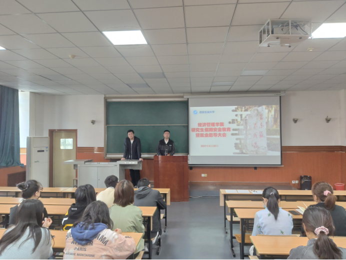 為進(jìn)一步做好“五一”假期節(jié)前安全教育,加強(qiáng)研究生日常管理工作,提高研究生安全防范能力和就業(yè)競(jìng)爭(zhēng)力,4月28日下午,經(jīng)濟(jì)管理學(xué)院在雁塔校區(qū)東階202教室召開(kāi)“五一”假期節(jié)前安全教育暨就業(yè)指導(dǎo)大會(huì),研究生輔導(dǎo)員武威、柴睿及在校研究生100余人參加會(huì)議。