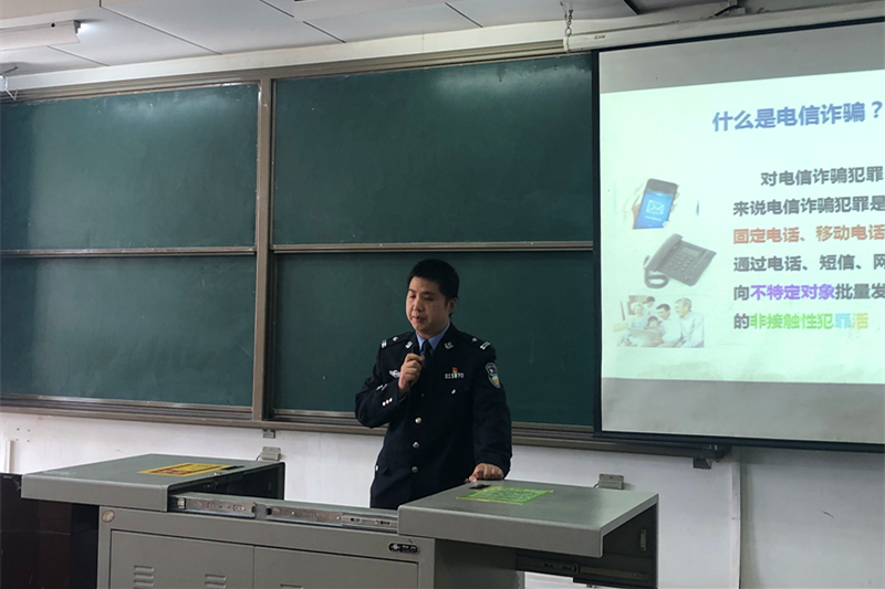 講座中,兩位警官列舉實例、結(jié)合實情、分析時勢,分別從“防范電信網(wǎng)絡詐騙”、“大學生安全防范”兩個主題,緊密圍繞學生校園生活、校外出行、網(wǎng)絡安全、自我防范等方面,向參加報告的學生做了詳細的分析與講解,旨在希望廣大學生,能深刻認識到潛在的各類安全隱患,不斷提高自我防范的意識,服從學校管理,遵守法律法規(guī)。講座最后,民警同志們還為參會學生發(fā)放了安全提示教育材料,指導學生面對各類危險應采取的有效做法。