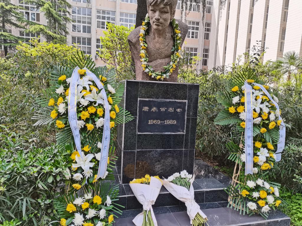 2021年4月16日11時,石油工程學院在雁塔校區(qū)“春雨苑”舉辦唐春雨烈士逝世32周年悼念活動,深切緬懷我校32年前因救落水女工而不幸犧牲的唐春雨烈士。研究生工作部部長高榮芳、副部長李甦,學生工作部副部長劉笛,石油工程學院黨委書記馬勇、黨委副書記張建高、副院長劉志坤、教授代表徐波出席了此次悼念活動,參加本次活動的還有石油工程學院學生工作辦公室全體輔導員和學生黨員代表。