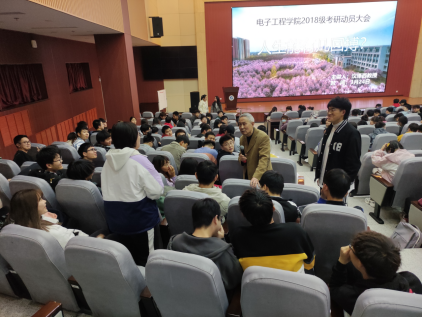 2021年3月24日下午,電子工程學院在鄠邑校區(qū)弘石學術報告廳召開了題為“人生能有幾回搏?”的2018級考研動員大會。本次動員大會邀請到了我院退休教授漢澤西老師擔任主講嘉賓,會議由學院2018級輔導員錢宇航老師主持,2018級200余名學生參加了本次活動。