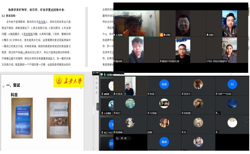 2021年3月15日至3月16日,地球科學(xué)與工程學(xué)院根據(jù)考研上線學(xué)生的目標(biāo)院校,有針對(duì)性地組織了六場(chǎng)考研復(fù)試指導(dǎo)會(huì),邀請(qǐng)考取相應(yīng)學(xué)校的校友擔(dān)任主講嘉賓,2021屆考研上線的80余名學(xué)生分院校參會(huì)。