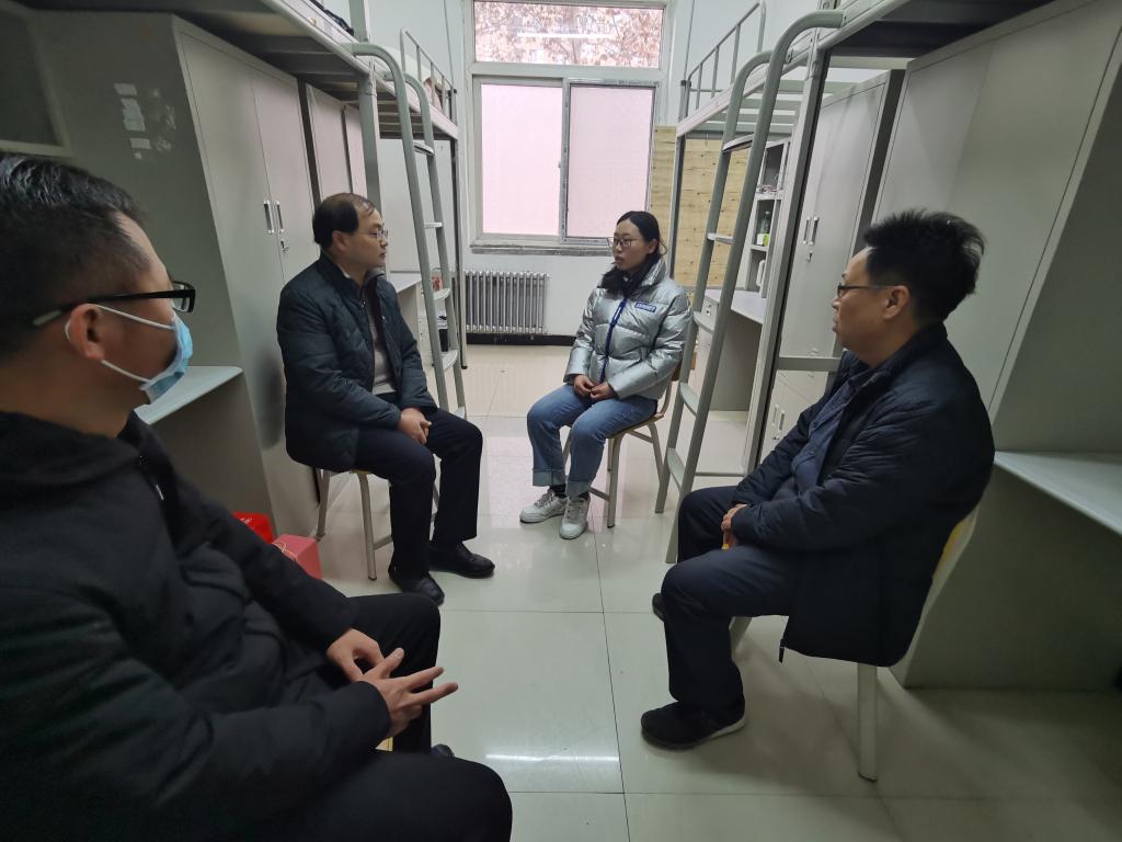 李強書記一行前往雁塔校區(qū)一號學(xué)生公寓看望馬金采同學(xué),詳細了解了她假期留校學(xué)習(xí)、生活的實際需求,尤其對生活保障、學(xué)習(xí)活動、疫情防控等進行了深入交流。王魁生院長囑咐她在做好個人防護的基礎(chǔ)上,合理利用假期時間學(xué)習(xí)充電、提升自我。馬金采同學(xué)隨后與潘少偉老師就寒假期間的學(xué)習(xí)科研任務(wù)進行了溝通,同時表達了對學(xué)校和學(xué)院給予關(guān)心關(guān)懷的感激之情。