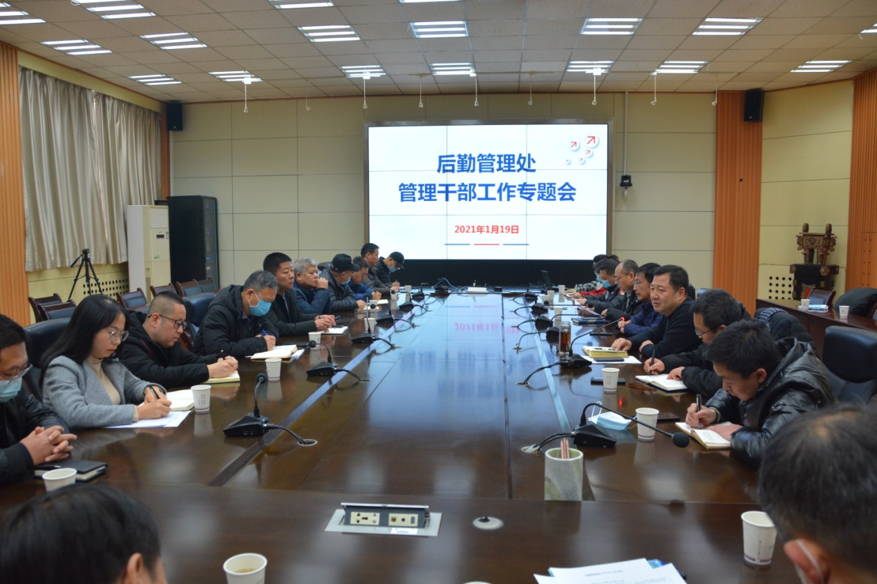 119日上午,后勤管理處召開科以上管理干部工作專題會議,回顧2020年工作,安排部署2021年重點工作。蘇文甫副校長與會,并親切寄語包括新任命的科級在內(nèi)的后勤管理干部。