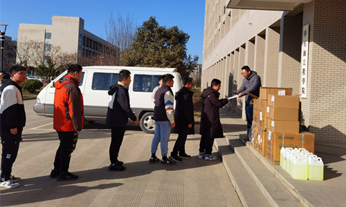 西安維度機電設備有限公司負責人段放衛(wèi)代表企業(yè)向學院捐贈了2萬只口罩以及酒精、消毒液等防疫物資。張建高副書記在致辭中對企業(yè)的善舉表示感謝,同時表示一定要將防疫物資用在師生最需要的地方,扎實做好疫情防控相關工作,確保學院各項工作的有序開展。