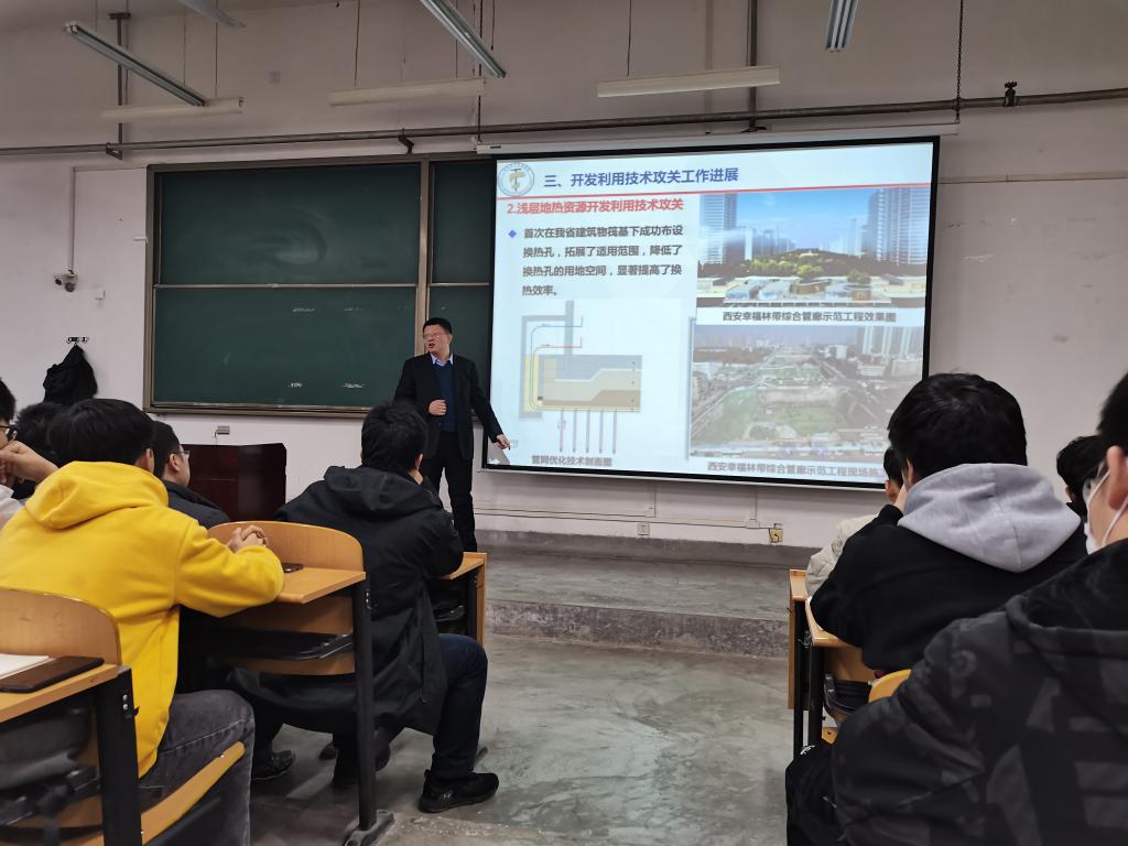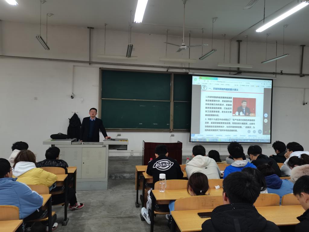 講座上,鈔中東先生從開發(fā)利用地?zé)崮艿闹卮笠饬x、調(diào)查評(píng)價(jià)工作的進(jìn)展、開發(fā)技術(shù)攻關(guān)工作的進(jìn)展、開發(fā)利用現(xiàn)狀存在的問題及相對(duì)應(yīng)的對(duì)策建議這五個(gè)方面進(jìn)行了講解,特別探討了地?zé)崮茉陉兾魇〉拈_發(fā)利用進(jìn)展,以及地?zé)崮艿惹鍧嵞茉丛谖覈?guó)“十四五”發(fā)展建設(shè)當(dāng)中所發(fā)揮的重要作用。鈔老師談到隨著世界各國(guó)對(duì)于能源需求的不斷增長(zhǎng)和環(huán)境保護(hù)的日益加強(qiáng),地?zé)崮艿惹鍧嵞茉吹耐茝V應(yīng)用已成為必然趨勢(shì),在此背景下,新能源產(chǎn)業(yè)的發(fā)展能夠?qū)夂騿栴}、傳統(tǒng)能源結(jié)構(gòu)固化和金融領(lǐng)域危機(jī)轉(zhuǎn)變?yōu)槿碌目沙掷m(xù)增長(zhǎng)機(jī)遇,為世界經(jīng)濟(jì)發(fā)展提供新動(dòng)力,注入新鮮血液。經(jīng)過將近兩個(gè)小時(shí)的專業(yè)講解,提升了我院能科專業(yè)學(xué)生對(duì)專業(yè)的學(xué)習(xí)熱情,拓寬了學(xué)生的專業(yè)學(xué)習(xí)視野,加深了學(xué)生對(duì)專業(yè)發(fā)展前景的認(rèn)識(shí)。講座最后,楊昌華教授就地?zé)崮芪磥?lái)發(fā)展與將來(lái)就業(yè)去向與現(xiàn)場(chǎng)學(xué)生進(jìn)行了深入交流。