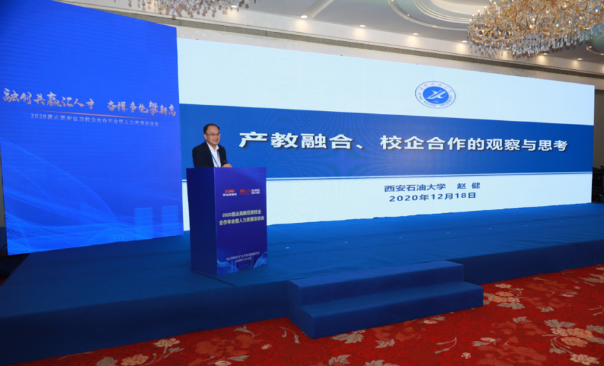我校學生工作部部長、就業(yè)指導中心主任趙健應邀在會上做了《產教融合、校企合作的觀察與思考》的主題演講。他圍繞“十三五”期間我國產教融合、校企合作的發(fā)展態(tài)勢,總結回顧了我國產教融合政策體系構建、普通高等教育和職業(yè)教育的發(fā)展、產教融合和校企合作方面的亮點,結合地方本科院校的定位于特點,分析了現階段產教融合領域存在的薄弱環(huán)節(jié),提出了“十四五”期間政府、高校、企業(yè)深化產教融合,構建協(xié)同育人網絡體系的對策建議,并簡要介紹了我校發(fā)展建設概況和畢業(yè)生就業(yè)工作,對我校2021屆畢業(yè)生進行了現場推介。主旨報告受到了與會代表的一致好評。