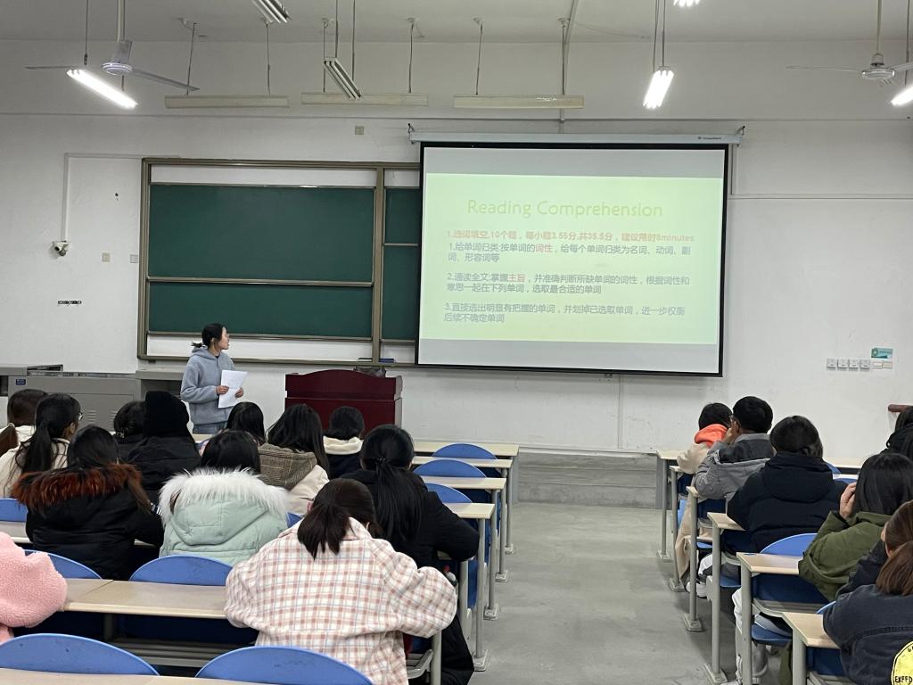 此次英語四級考前強(qiáng)化班,為備戰(zhàn)四級考試的同學(xué)提供了具體有效的應(yīng)試策略和方法,不僅對督促學(xué)生主動(dòng)學(xué)習(xí)以及提升英語四級考試應(yīng)試水平有著積極作用,還進(jìn)一步增強(qiáng)了學(xué)生應(yīng)考的自信心。