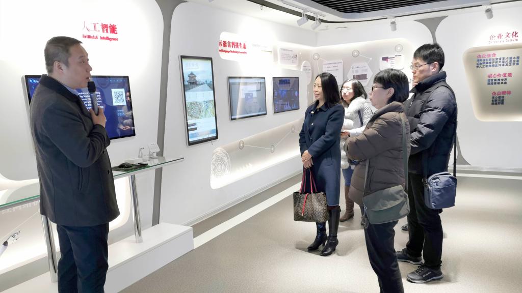 首先參觀了公司及展廳,公司副總經(jīng)理張欣晨向我院介紹了公司的歷史沿革和技術(shù)研發(fā)情況,重點(diǎn)介紹了語(yǔ)音識(shí)別與機(jī)器翻譯結(jié)合技術(shù),向大家展示了公司的發(fā)展成就及“譯見?大數(shù)據(jù)平臺(tái)”、數(shù)據(jù)可視化分析平臺(tái)、語(yǔ)言盒子?智能會(huì)議解決方案等最新科技成果。