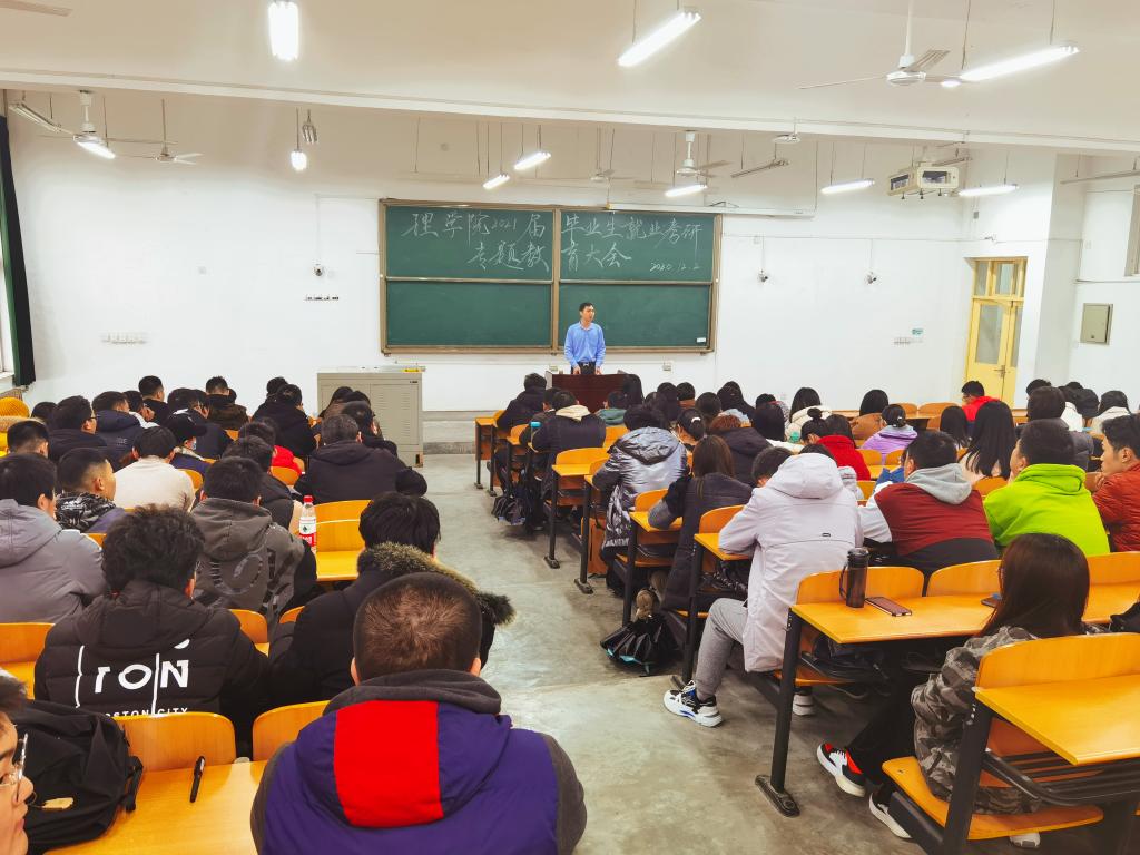 12月2日下午,理學院在鄠邑校區(qū)B214教室舉辦本學期第四次畢業(yè)生就業(yè)考研專題教育大會,學院黨委副書記馬小剛主講,學生管理辦公室主任丁亦喆主持,2017級全體本科生參會。